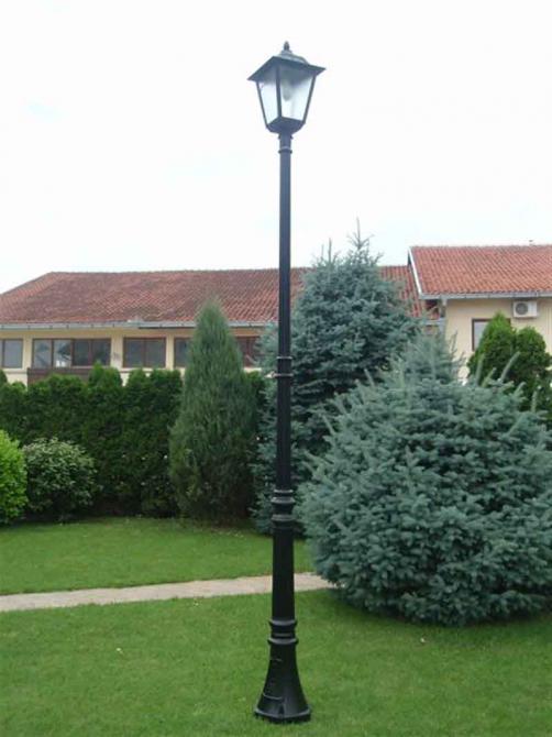 Dimenzije: H=3,9m; fenjer 0,60 x 0,34m Difuzor: staklo Materijal: Al legura Boja po želji Izvor svetla: grlo E27; E40